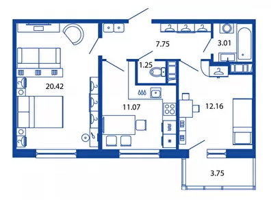 1-комнатная  - 37 м2