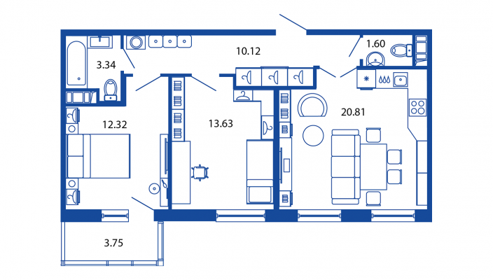 2-комнатная - 61 м2